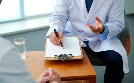 Врач и пациент беседуют за столом